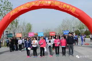 4月14日星期六,春风习习,神清气爽。淄博孝妇河湿地公园欢声笑语,人头攒动。来自新华医药集团公司 40余个单位的 1289名职工精神抖擞、意气风发、兴致勃勃的参加了庆祝新华医药集团成立七十五周年第五届迎春长跑活动。