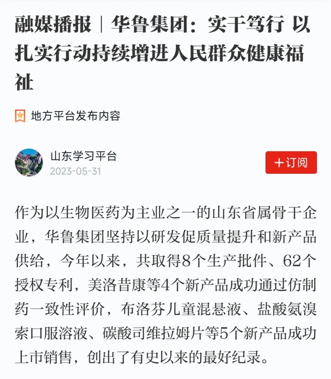 作为以生物医药为主业之一的山东省属骨干企业,华鲁集团坚持以研发促质量提升和新产品供给,今年以来,共取得8个生产...