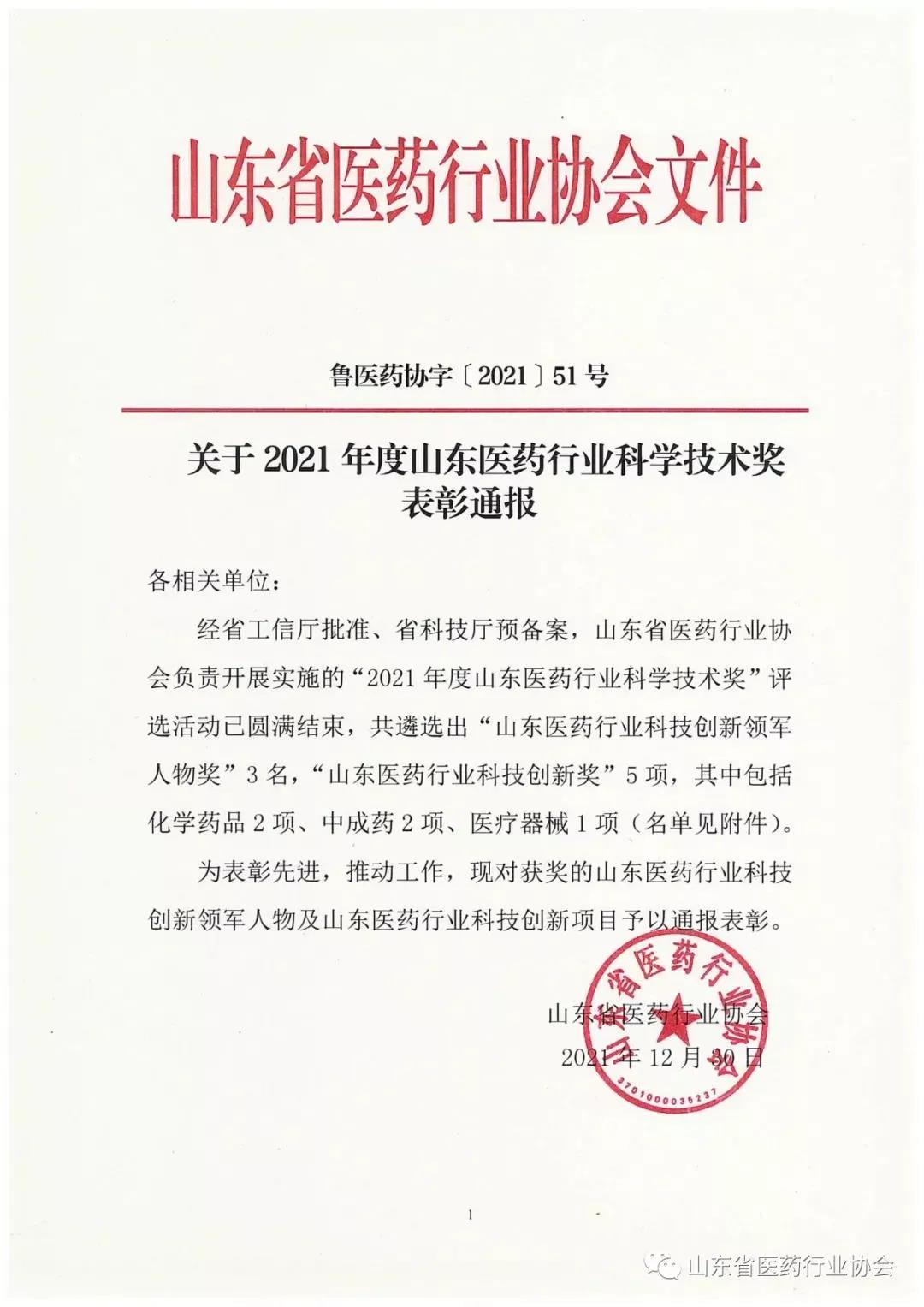 近日,山东省医药行业协会公布了2021年度山东医药行业科学技术奖表彰结果,新华制药副总经理郑忠辉获评“山东医药行业科技创新...